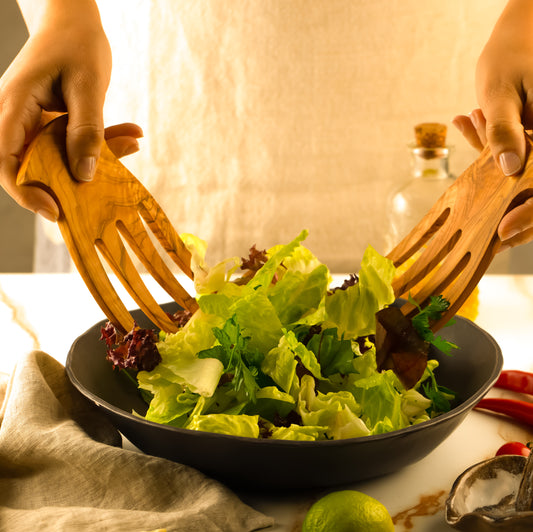 Zeytin Ağacı El Yapımı 2 Parça Salata Servis Seti