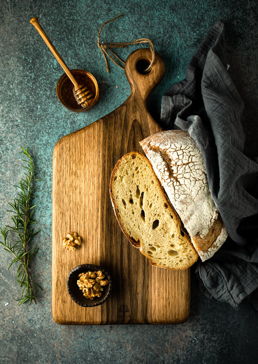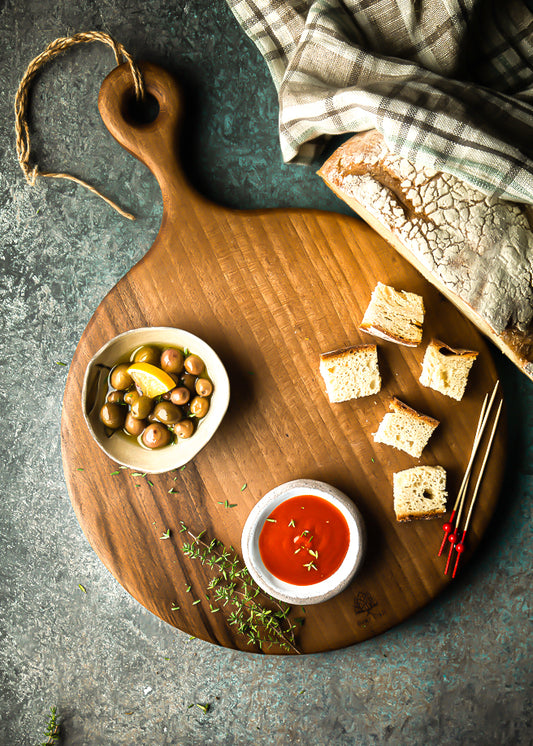 Ceviz Ağacı El Yapımı Yuvarlak Saplı Sunum Tahtası