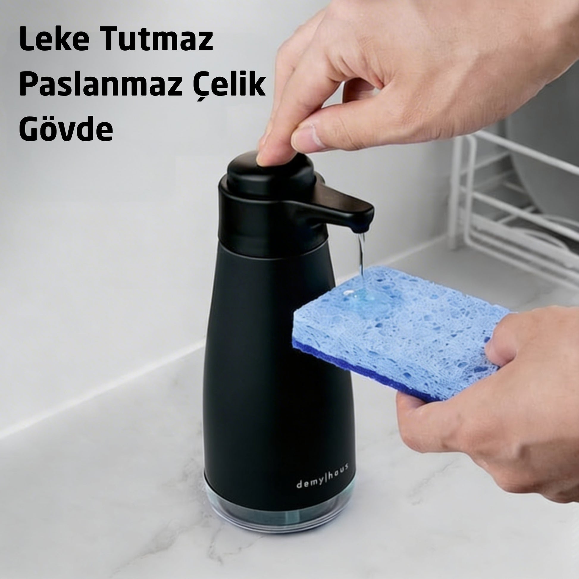 Demy Haus SenseTouch Paslanmaz Çelik Sıvı Sabunluk Siyah